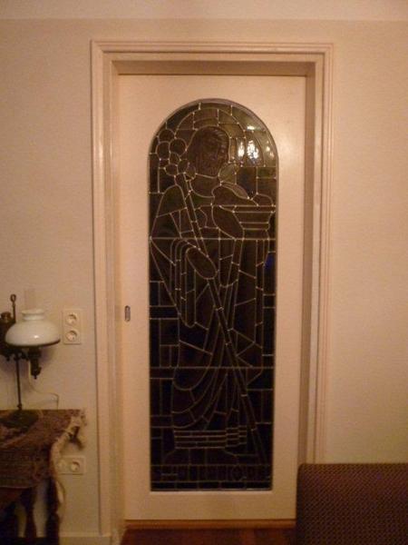 Graag wilden ze een glas in lood raam, een dierbaar cadeau in de deur verwerkt zien.