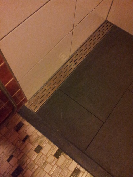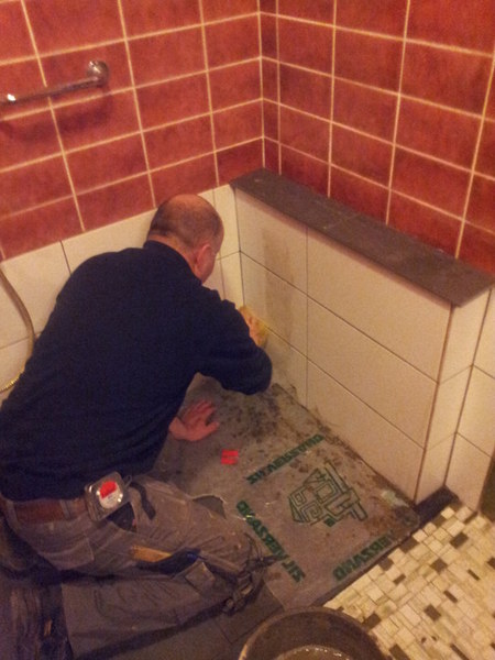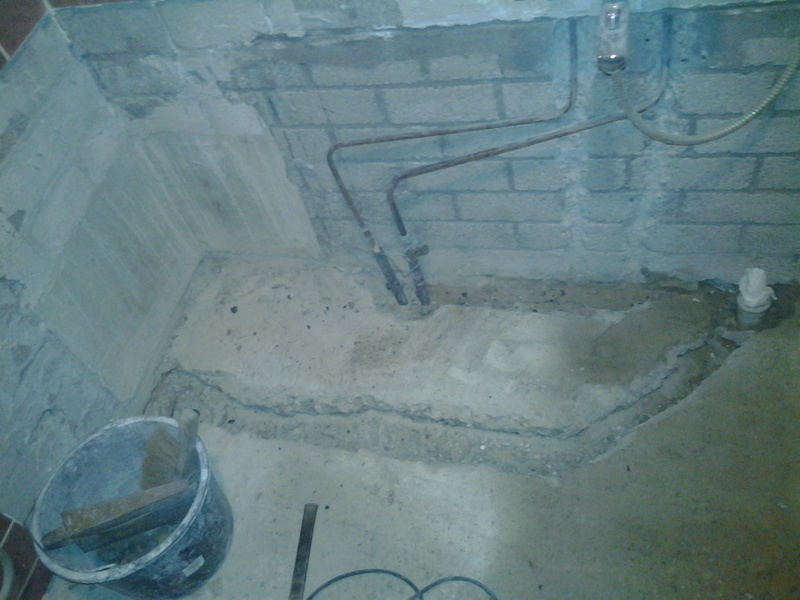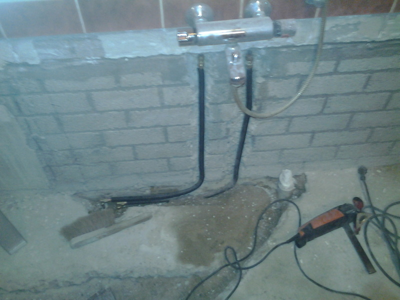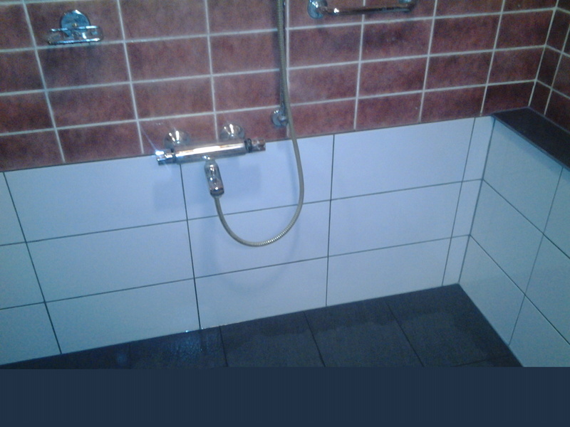Na het verwijderen van het ligbad moest de koud- en warm water toevoer in de wand worden verlegd.