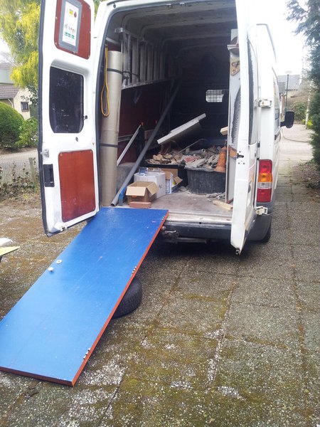 De bus raakte goed vol met al het puin en dergelijke.
