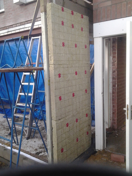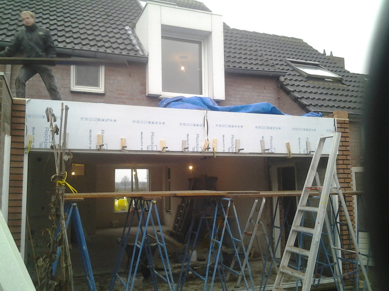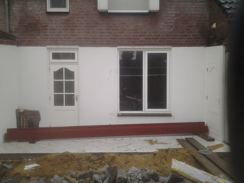 Plaatsen van staalbalk in achtergevel na goed stut-werk.