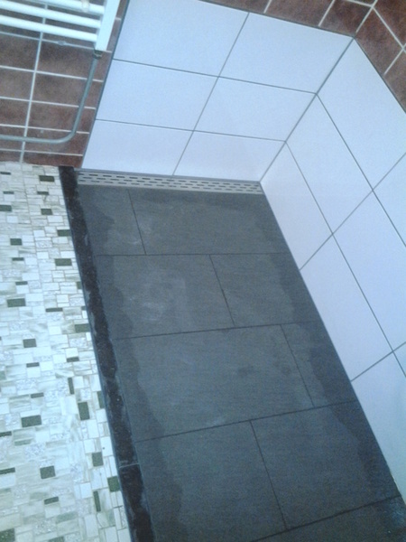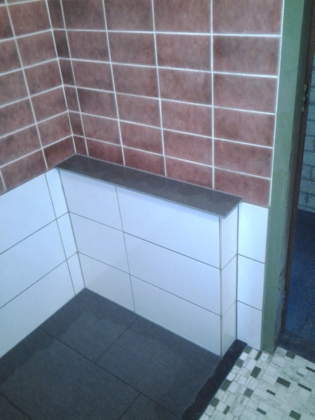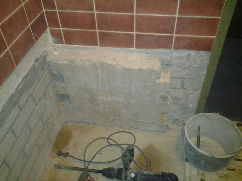 Na het verwijderen van het ligbad moest de koud- en warm water toevoer in de wand worden verlegd.